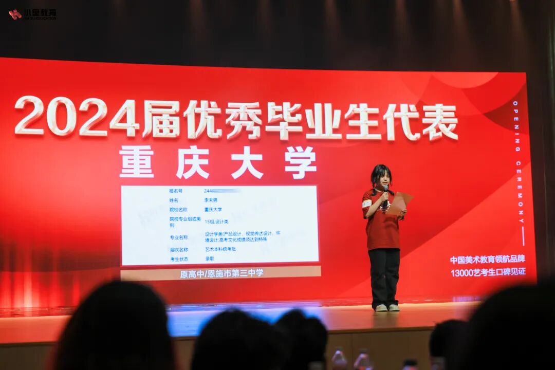 2024届小里学子李末男,成功录取985重庆大学。活动当天,她作为优秀毕业生代表上台发言,她表达了对 老师的感谢也向在座的学弟学妹分享了自己的心路历程。