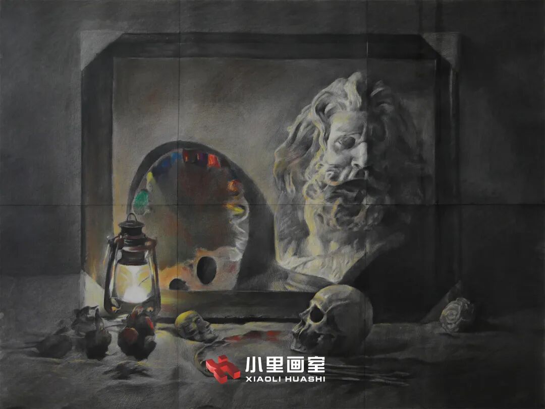 所以通过释放出来的改革信号,我们更应清楚学生应该具备美术功底、审美能力、创造动手能力等综合能力。老师们常在课堂上强调的多对比 多观察 多检查 也是希望学生在学习上能从被动到主动,那我们通素描静物的课程延展出本次的“团队与单兵作战”的创作实践课,不仅丰富了课堂内容,而且提升了学习氛围,更是给到学生们更广阔的的空间去探索。