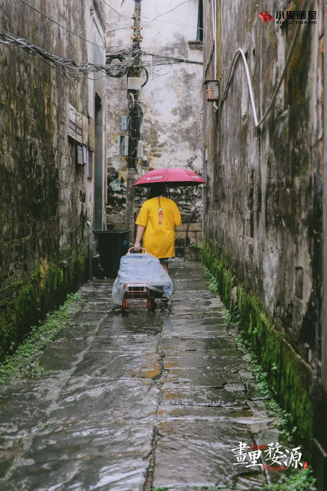 在小巷子里、大树下、溪水畔、田野里、古宅旁