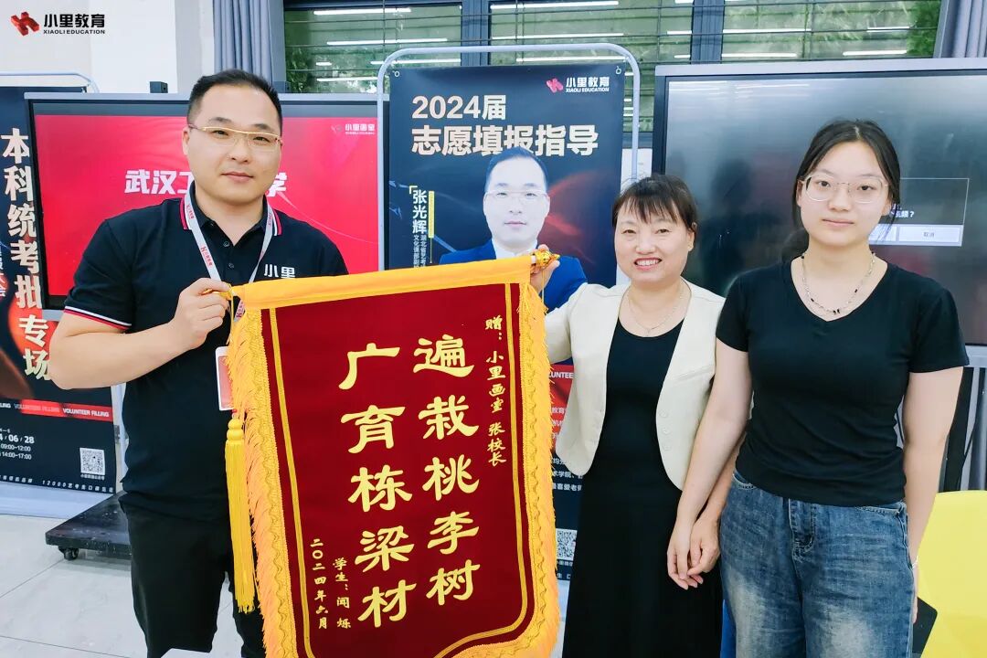 在志愿填报指导过程中,来自黄冈的学生家长突然送锦旗给小里的老师,并表示“金杯银杯不如学生的口碑”。不管是小里的专业课还是小里的文化课,都得到了众多家长的高度赞扬和认可。