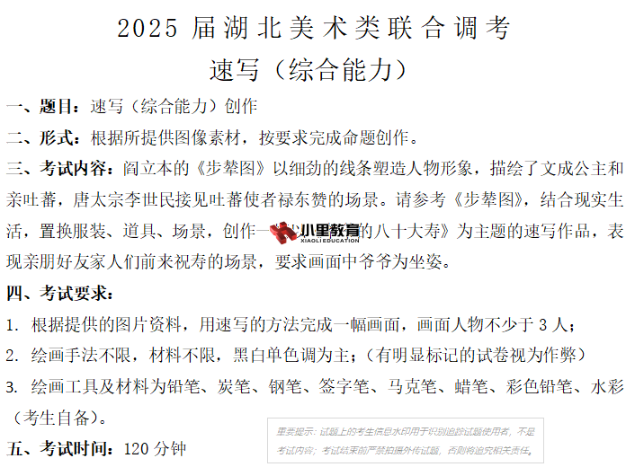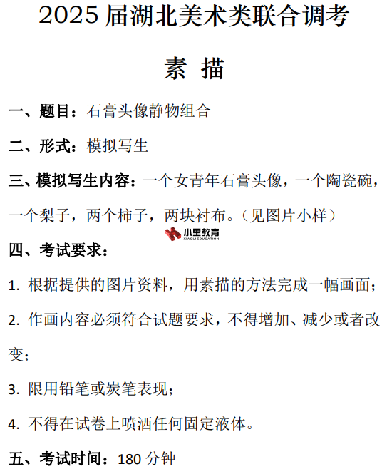 2025届"美学美育"湖北美术类联合调研考试,"一模"摸底联合调考于2024年10月6日举行。