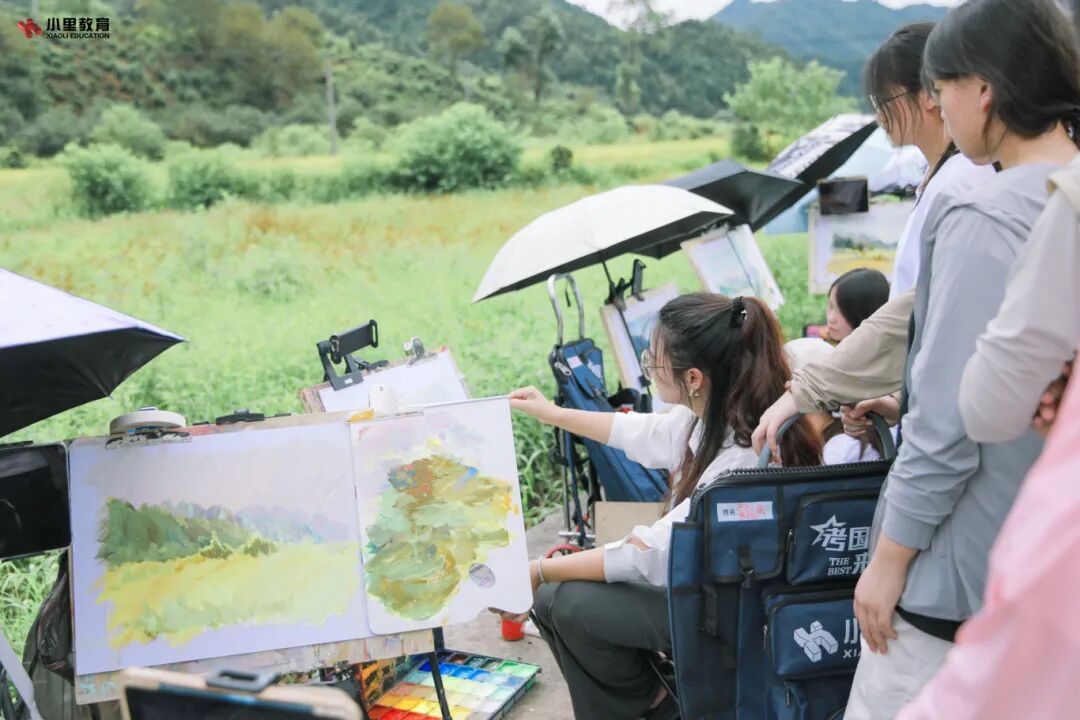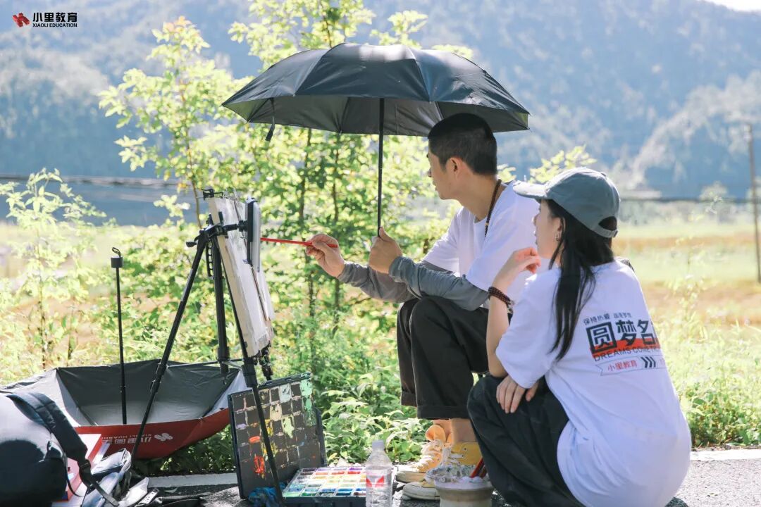 小里学子内心燃烧着对美术的无限热忱,满怀着对艺术的真挚热爱,步入大自然之中,尽情在画布上泼洒灵动的色彩。