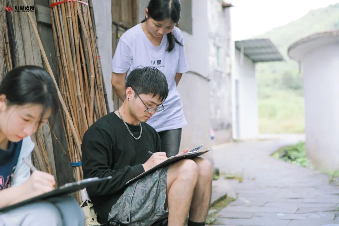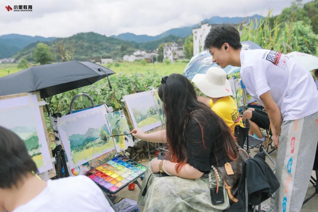 在辽阔的村落,群山起伏化作小里学子挥洒艺术的舞台,五彩斑斓的田园景致成为他们选色的调色盘,而那沧桑的建筑群则唤起了他们源源不断的创意灵感。