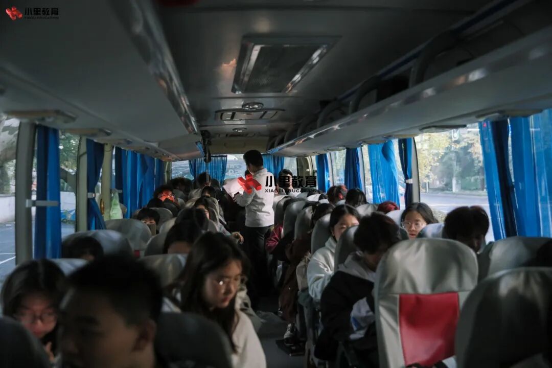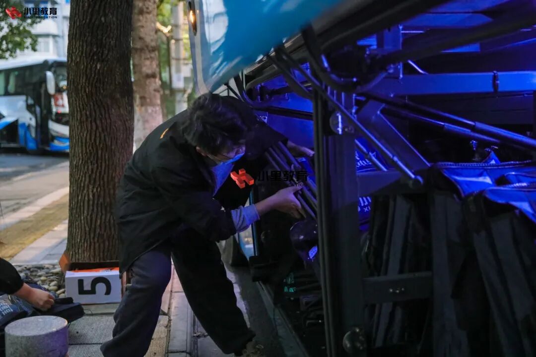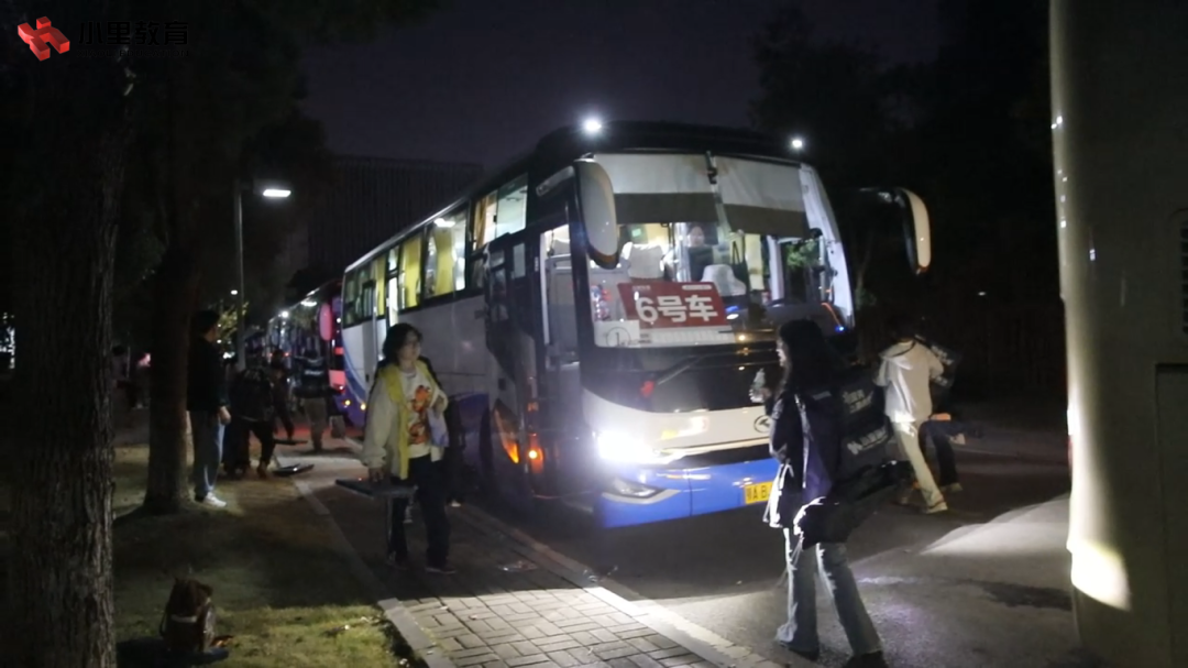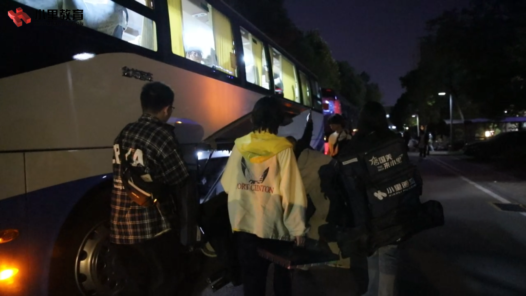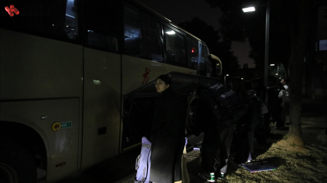 小里学子迅速整理好各自的考试必需品,跟随领队老师的指引,整齐集结完毕,登上等候的巴士,踏上归途。